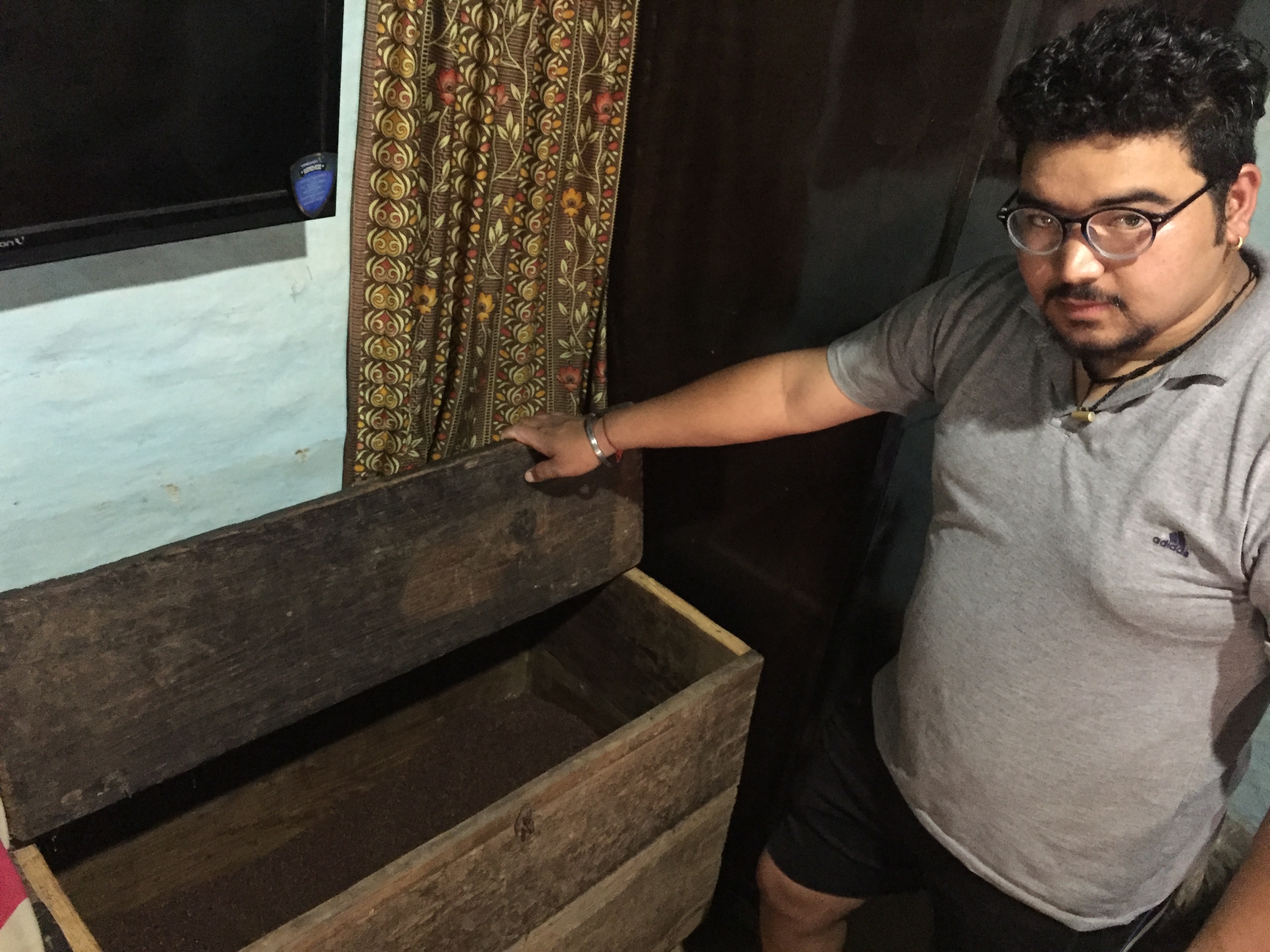 In past, community at Khirsu was self relient in terms of agricultural produces. They used to store grains in big wooden boxes called Kuthaar.