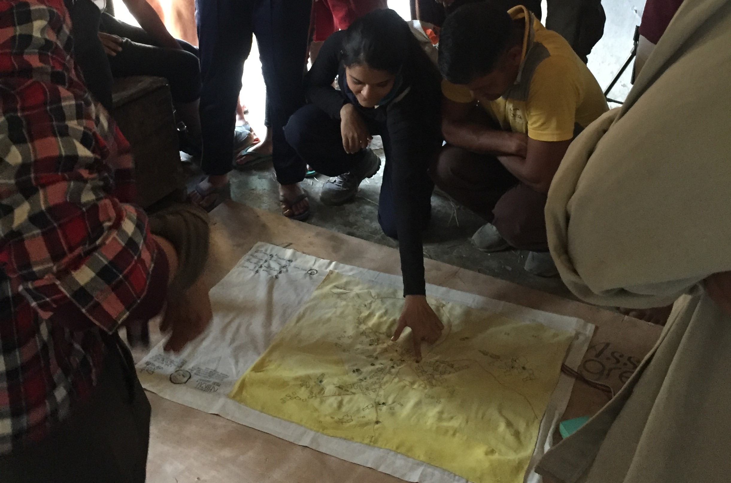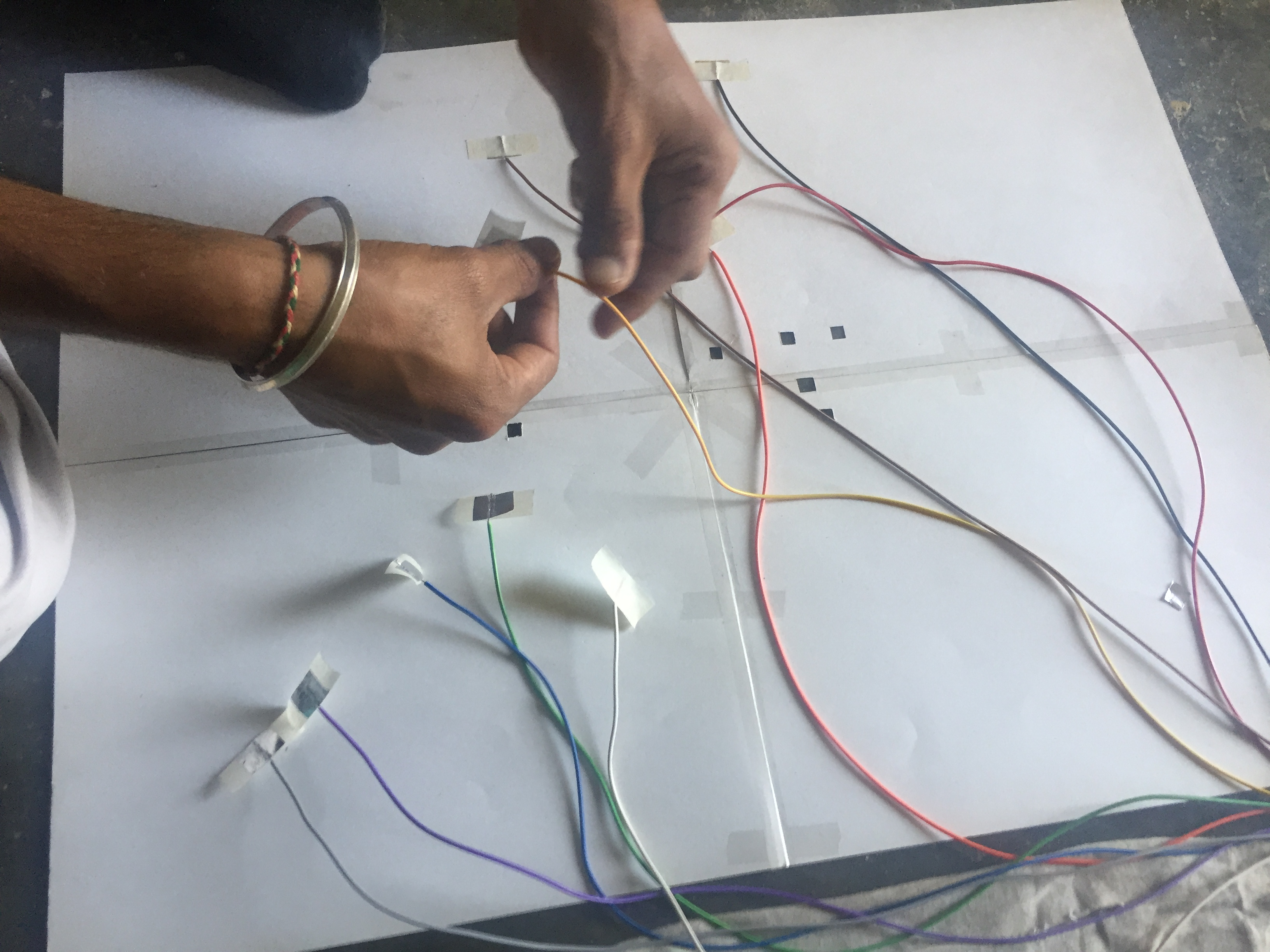 First prototype of map was on paper and second was on a fabric dyed using local turmeric to represent contour lines. Using custom circuits, sounds and images were linked to places of significance and made digitally interactive. The final prototype was demonstrated to community.