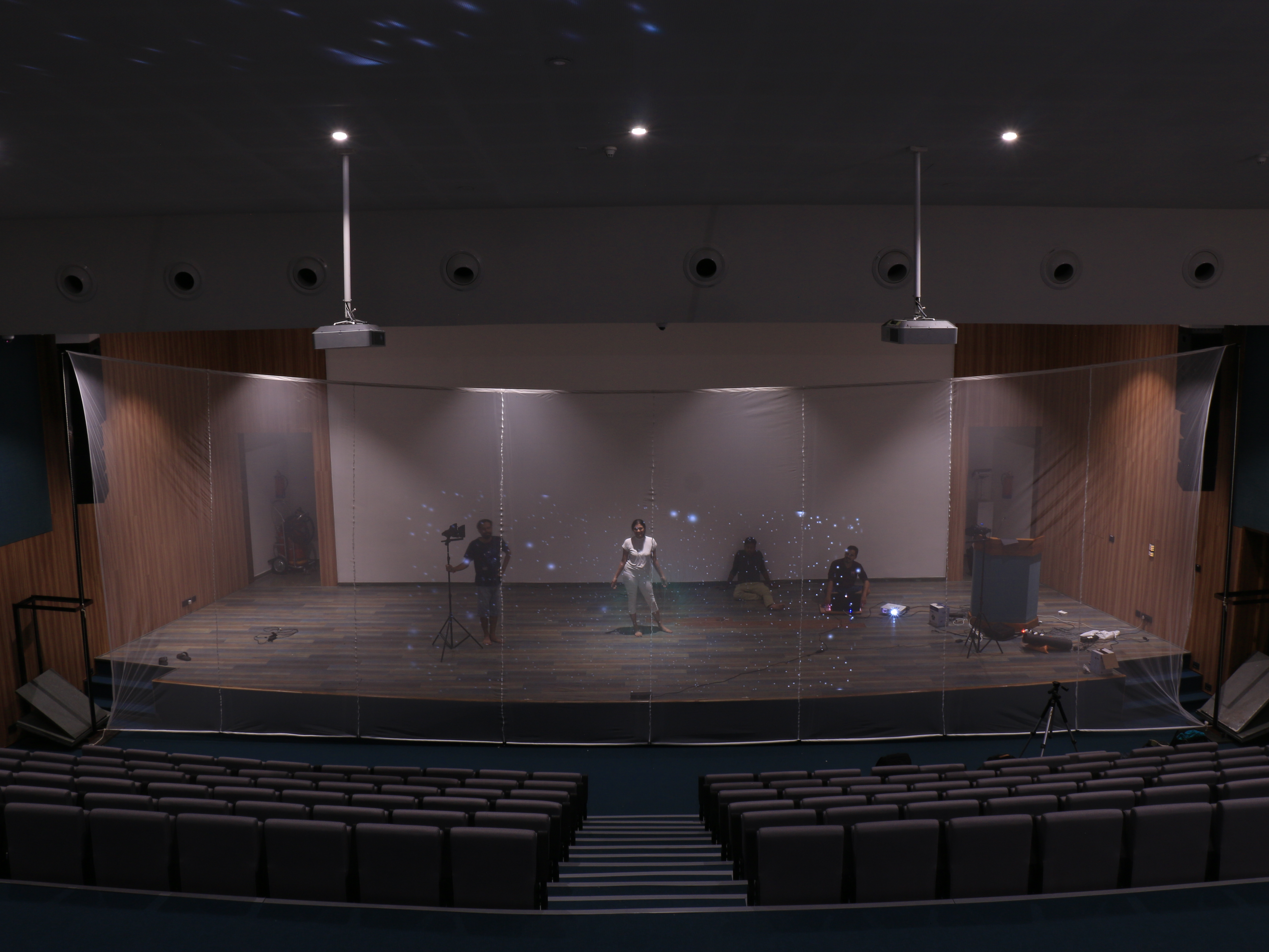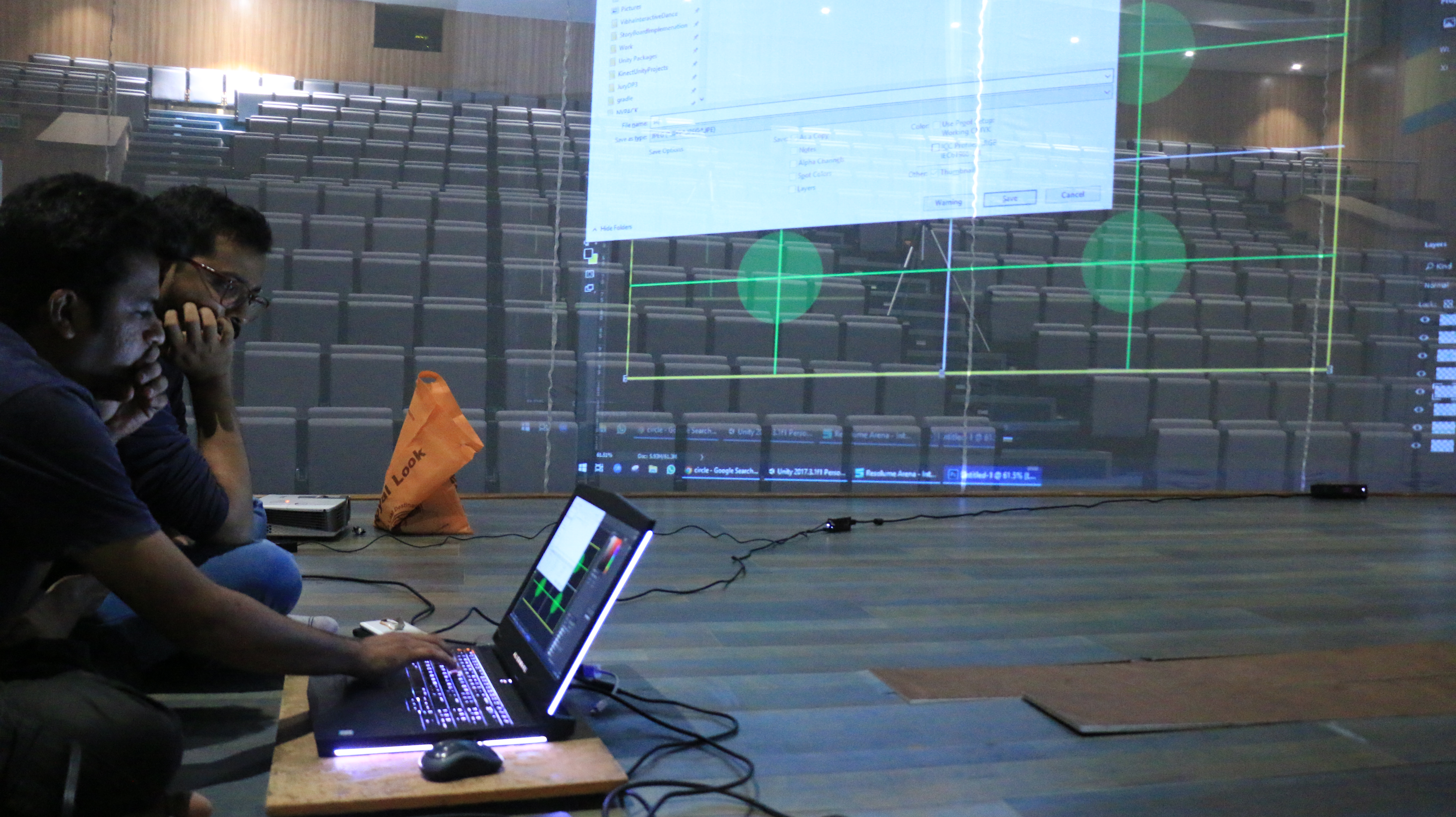 Visual design and dance choreography was done by the artist and the production involved live gesture reactive programming, projection mapping, lighting design and generative visuals. Four live performances shows took place at auditorium of National Institute of Design, Gandhinagar Campus.
